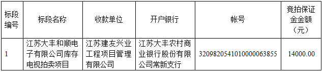 (1)項目名稱:江蘇大豐和順電子有限公司庫存電視拍賣項目。