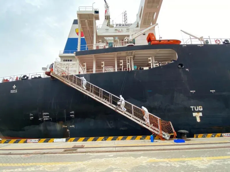 “弗朗西斯科”號輪原計劃二月中旬靠泊大豐港區進行貨物裝卸,因疫情防控、天氣惡劣等因素影響,導致大豐港區封港,船只無法正??堪丁W鳛槭肇浄降慕K博匯紙業公司,因長期收不到貨,導致庫存極度緊張,面臨著紙機停產的困境。集團第一時間了解情況后,當即決定利用鹽城港“一港四區”泊位資源,將該船轉港至濱海港區卸貨,解決客戶燃眉之急。在集團黨委的統一指揮下,相關港區主動對接,多方聯系,及時掌握船舶動態,合理調配人力資源,全力保障“弗朗西斯科”號外籍貨輪順利入港停泊。