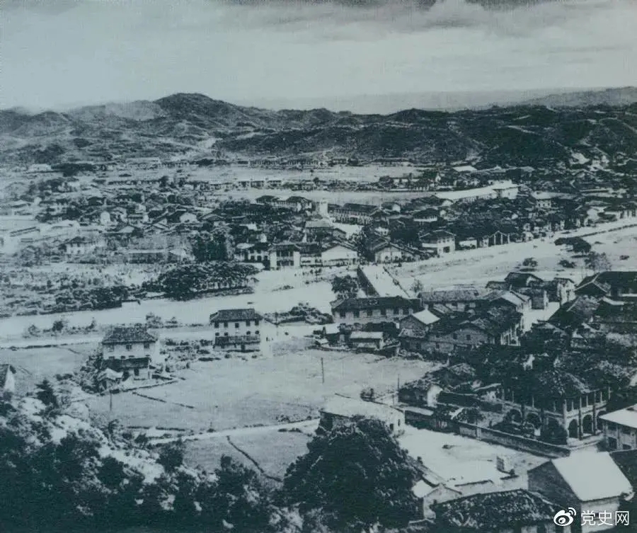 1928年4月,朱德率領南昌起義余部到達井岡山,與毛澤東領導的部隊勝利會師。圖為會師地點礱市全景。