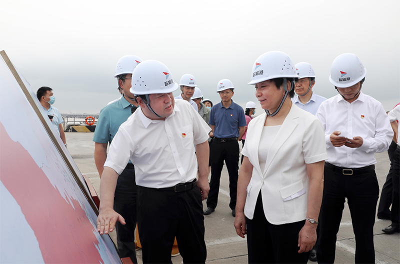 ▲黃莉新一行察看鹽城港大豐港區(qū)