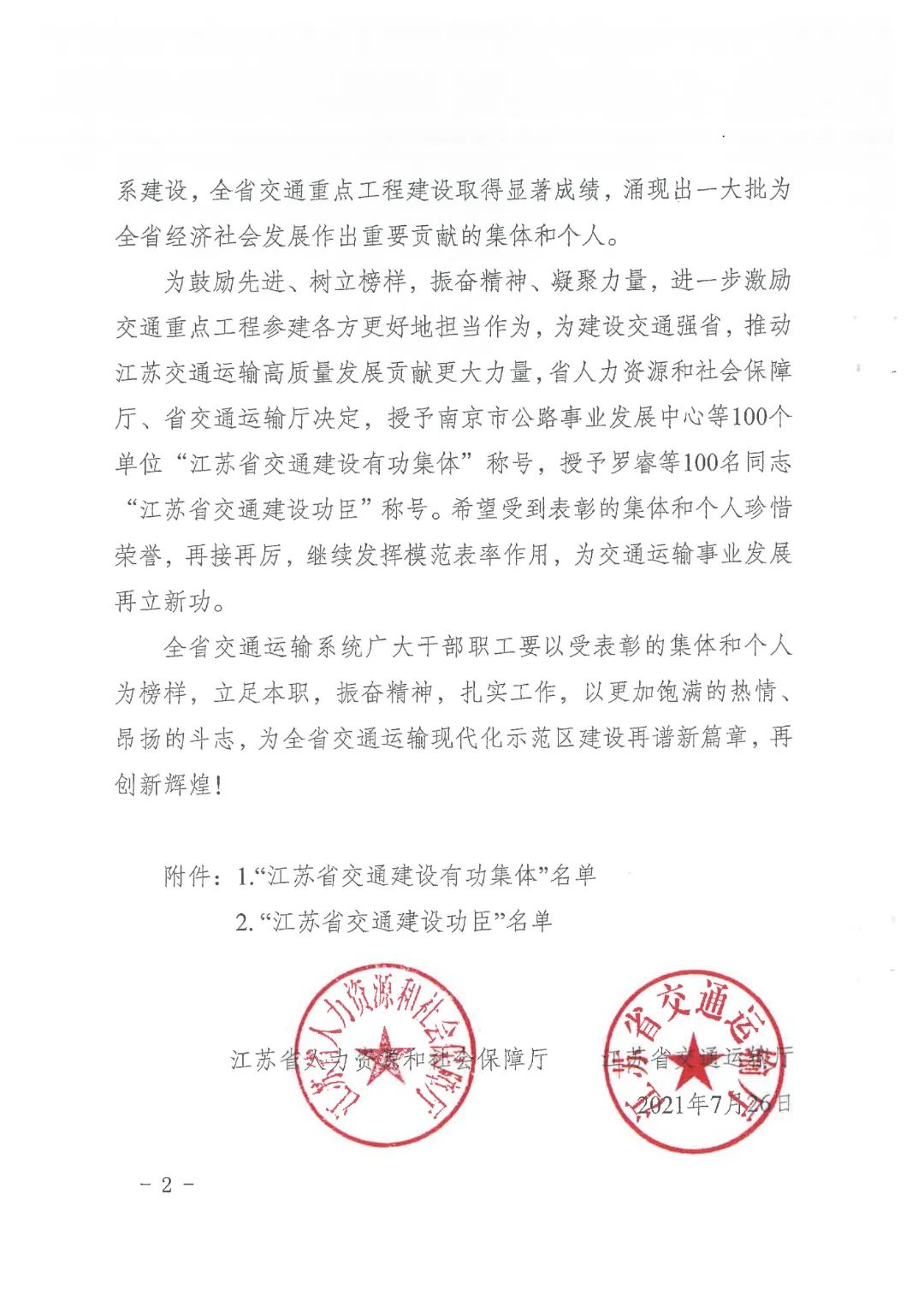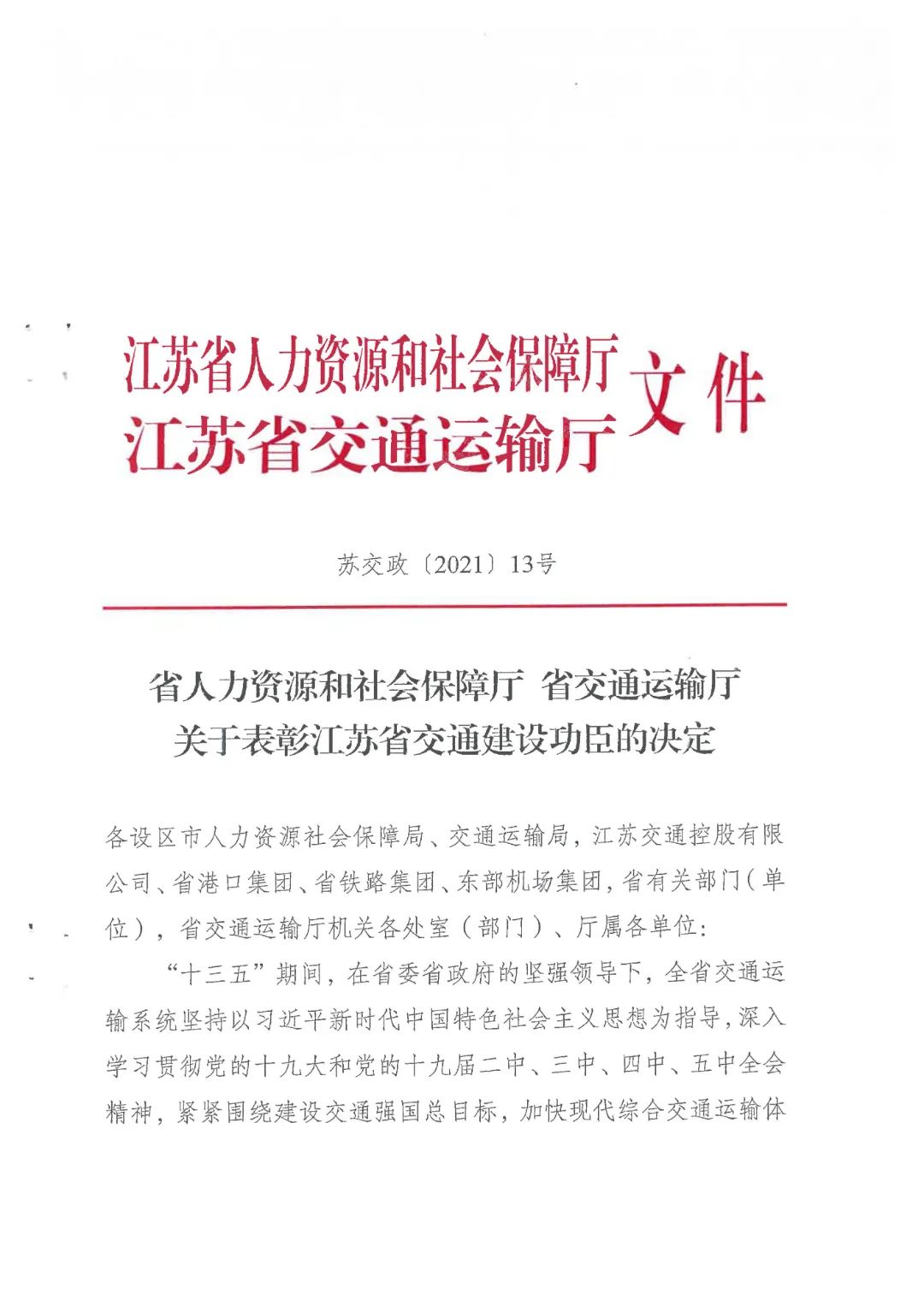 近日,省人力資源和社會保障廳、省交通運(yùn)輸廳印發(fā)《關(guān)于表彰江蘇省交通建設(shè)功臣的決定》,集團(tuán)下屬響水港集團(tuán)有限公司榮獲“江蘇省交通建設(shè)有功集體”表彰。