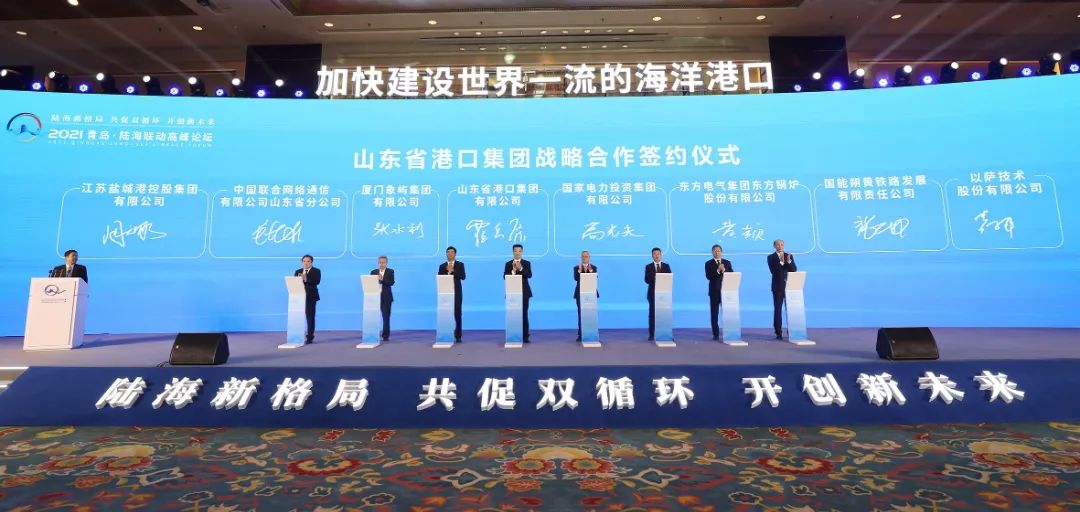 10月22日,鹽城港集團黨委書記、董事長、總經理周正雄率隊參加2021青島·陸海聯動高峰論壇活動,并與山東省港口集團簽訂戰略合作協議,進一步加深鹽城港與山東港口之間合作伙伴關系,推動環黃海生態經濟圈城市間人流、物流和資金流的互聯互通,共同努力在“雙循環”新發展格局中作出積極貢獻。