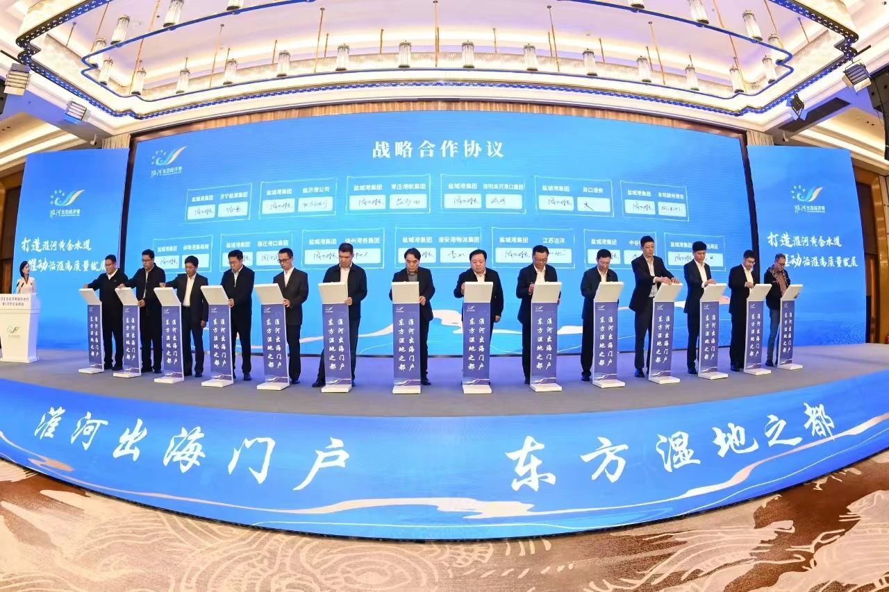 會上,與會人員觀看了淮河生態(tài)經(jīng)濟(jì)帶協(xié)同發(fā)展成果專題片,聽取了淮河生態(tài)經(jīng)濟(jì)帶城市合作工作推進(jìn)情況、淮河生態(tài)經(jīng)濟(jì)帶市際合作協(xié)議及重點合作事項。交通運輸部規(guī)劃研究院專家圍繞“淮河水運啟新程 航運藍(lán)圖展未來”作主旨演講。29個成員市(縣)負(fù)責(zé)同志共同簽署了《淮河生態(tài)經(jīng)濟(jì)帶生態(tài)環(huán)境保護(hù)市際合作協(xié)議》《淮河生態(tài)經(jīng)濟(jì)帶水運高質(zhì)量發(fā)展市際合作協(xié)議》《淮河生態(tài)經(jīng)濟(jì)帶綠色低碳發(fā)展市際合作協(xié)議》,淮河沿線港航、物流企業(yè)等單位與鹽城港集團(tuán)簽署了戰(zhàn)略合作協(xié)議。沿淮成員城市(縣)長作交流發(fā)言。淮河生態(tài)經(jīng)濟(jì)帶城市合作第六次市長會商會承辦城市安徽省亳州市向沿淮市(縣)發(fā)出盛情邀請。