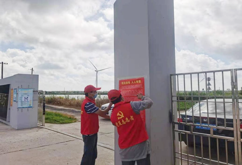 戰役集結號吹響后,葦魚養殖場響應上級部署,第一時間召開疫情防控會議,嚴格落實疫情防控機制,壓實責任擔當,組建黨員先鋒隊、志愿者服務隊對全轄區執行24小時人員排查和交通管控,設立疫情卡點,對外來人員及車輛進行摸排登記;深入各轄區、田間地頭張貼防控宣傳標語;入戶走訪排查,挨家挨戶為場區居民宣傳接種疫苗政策,普及接種疫苗知識,并對居民接種疫苗情況進行排查;利用微信、流動廣播、橫幅、宣傳冊等開展疫情宣傳,普及疫情防治知識;他們還每天定時在公共區域進行消殺,做好地面清潔及消毒工作,有效地切斷了病毒的傳播途徑。