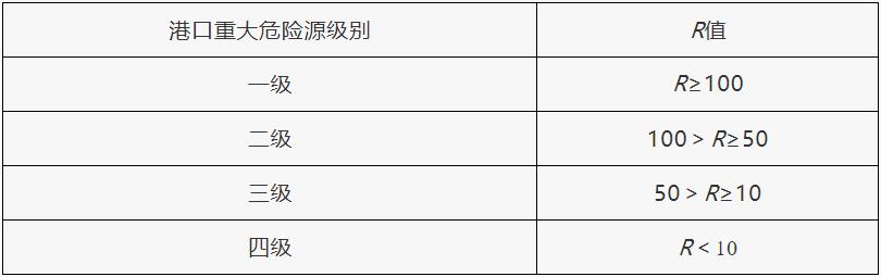 第五條 港口經(jīng)營人應(yīng)當(dāng)對本單位的港口重大危險源進行安全評估,并確定重大危險源等級。港口重大危險源按照其危險程度,由高到低依次劃分為一級、二級、三級、四級。港口重大危險源分級方法見附件。