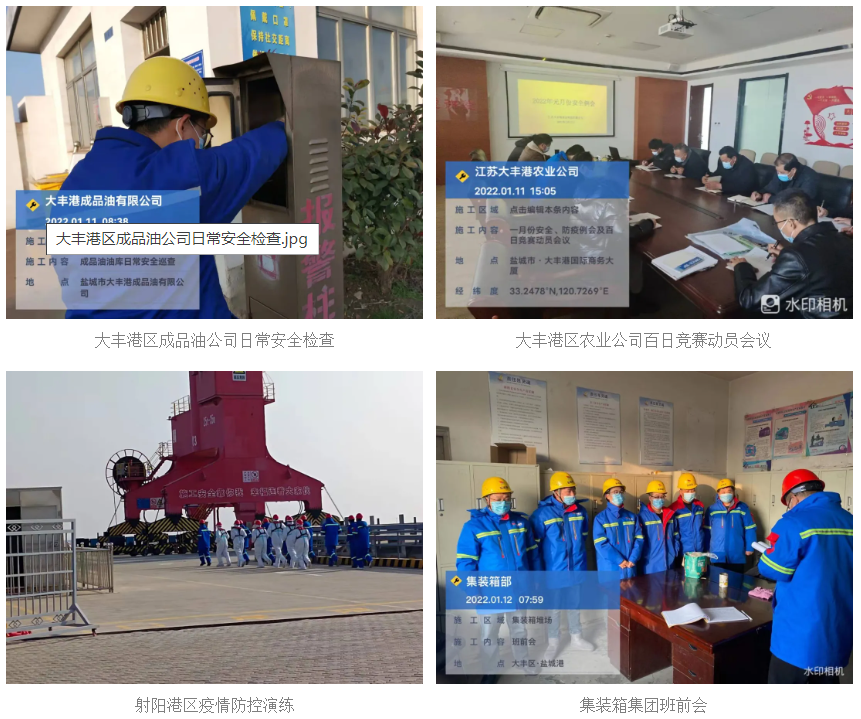 1.安全生產(chǎn)、疫情防控工作常態(tài)化持續(xù)開(kāi)展。鹽城港港口公司:安全、疫情防控日常巡查,班前會(huì),防疫消毒;濱海港區(qū):組織疫情防控演練,安全、疫情防控日常巡查,碼頭設(shè)備作業(yè)前安全檢查;大豐港區(qū):安全日常檢查,防疫消殺;集裝箱集團(tuán):安全、疫情防控日常巡查,碼頭設(shè)備作業(yè)前安全檢查,抓好了日常消殺工作;投資集團(tuán):安全、疫情防控日常巡查,組織作業(yè)人員核酸檢測(cè);陸港集團(tuán):作業(yè)現(xiàn)場(chǎng)、消防巡查,日常消殺;射陽(yáng)港區(qū):安全、疫情防控日常巡查,疫情防控演練,設(shè)備安全檢查,夜間安全巡查,安全交底;響水港區(qū):安全、疫情防控日常巡查,開(kāi)展一線(xiàn)人員核酸檢測(cè),對(duì)作業(yè)區(qū)、辦公區(qū)防疫消殺;鹽城港保稅物流公司:開(kāi)展安全、疫情防控日常巡查,組織作業(yè)區(qū)安全巡查,日常消殺工作;鹽城港項(xiàng)目公司:組織日常安全巡查,開(kāi)晨會(huì)布置安全工作。