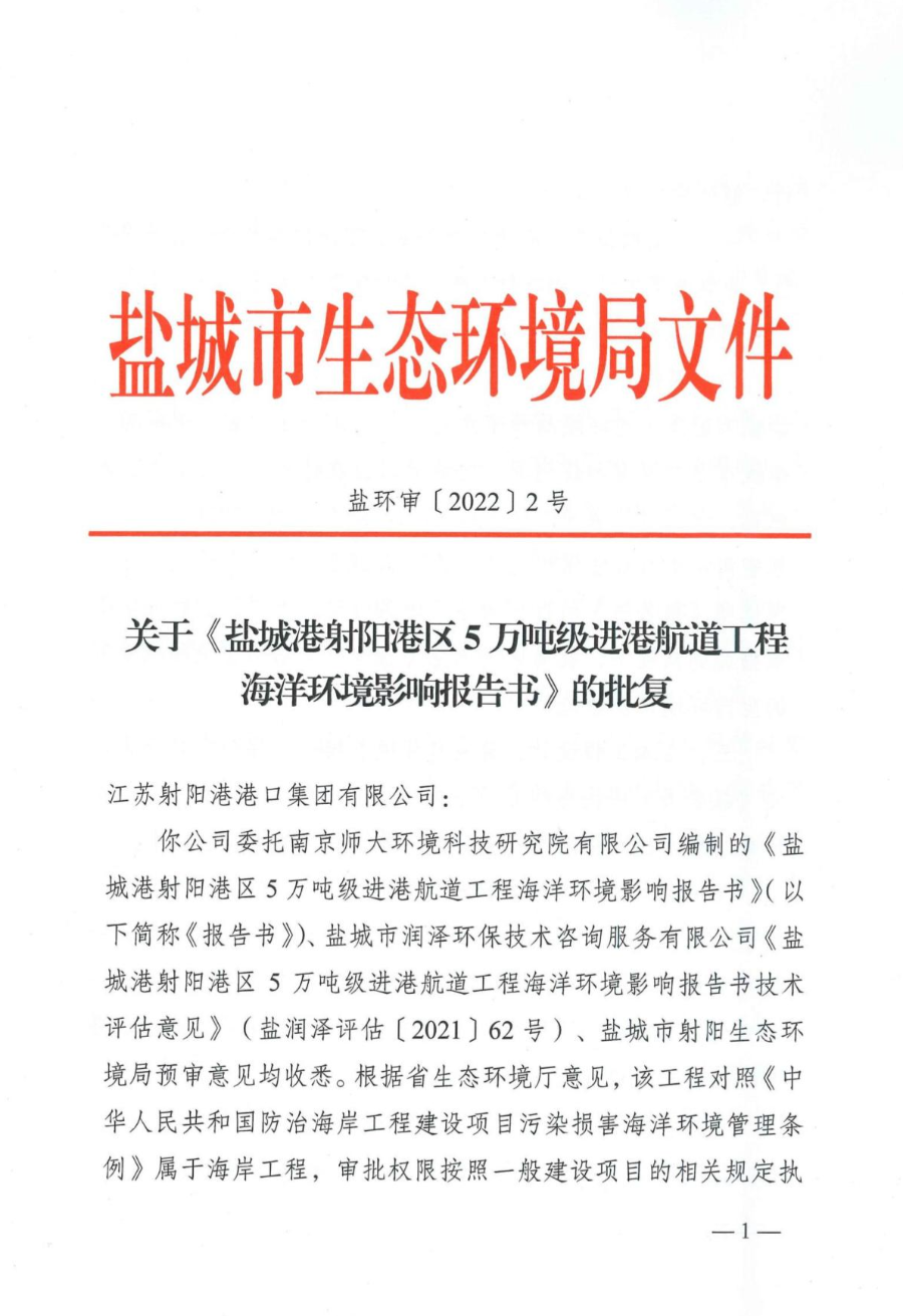 近日,鹽城港射陽港區5萬噸級進港航道項目海洋環評取得市生態環境局正式批復。至此,該項目已完成立項、用海預審、通航評估、安全預評價等十二項前期手續,向項目的正式開工又邁進了堅實一步。