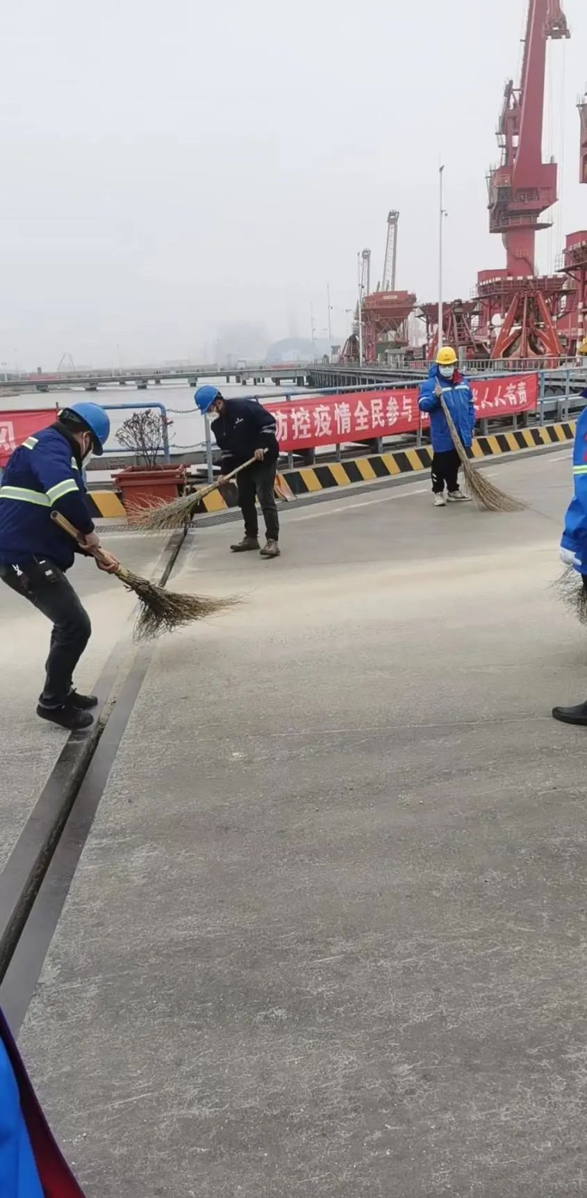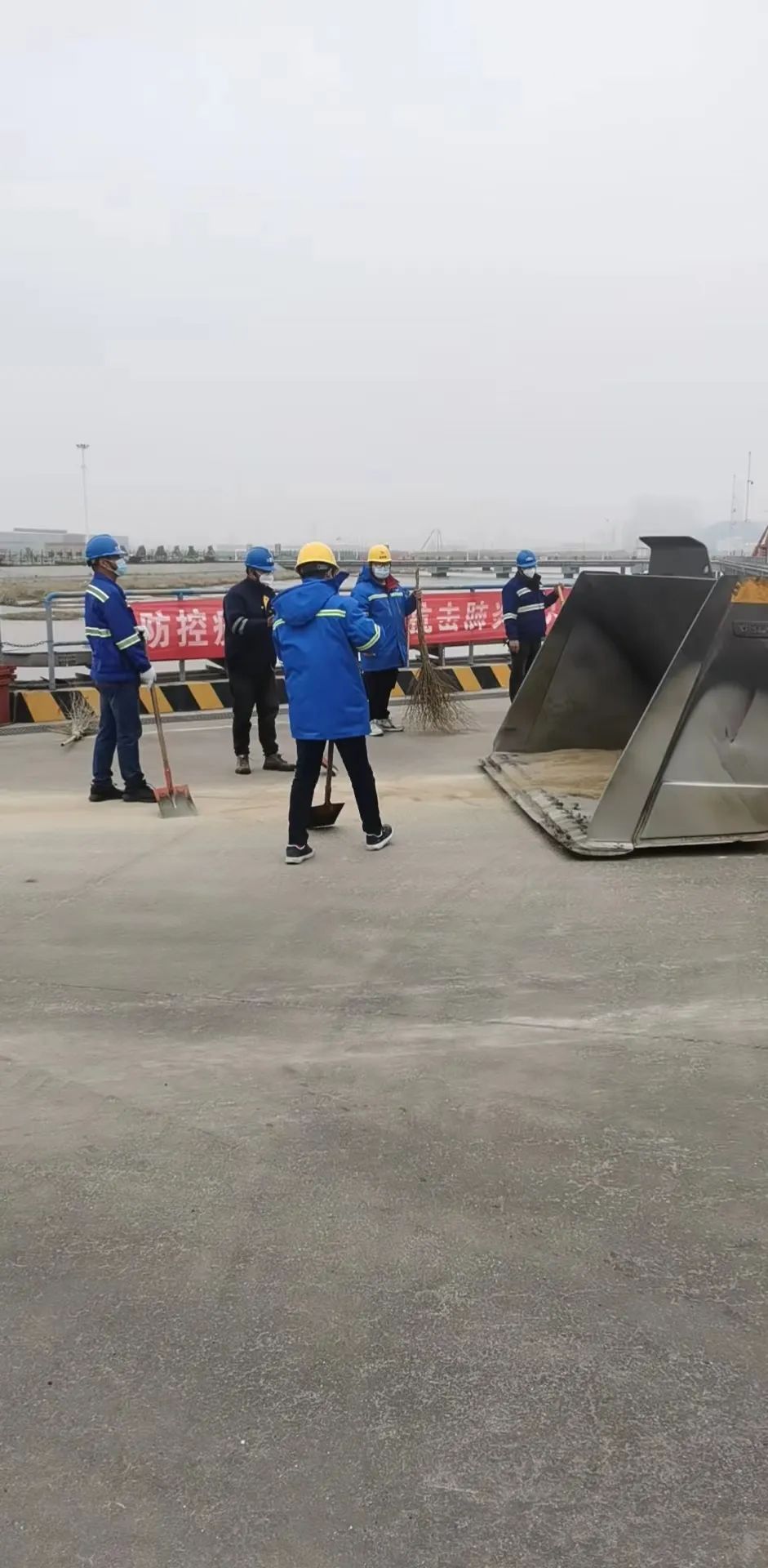 (生產(chǎn)部人員正在碼頭進(jìn)行拋灑貨物清理)