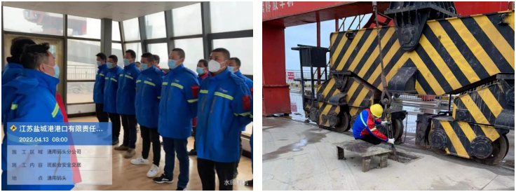 通用碼頭分公司緊緊圍繞“三位一體”的總體要求,結合碼頭自身實際,根據碼頭應急預案立即開展各項防風舉措,切實做到思想到位、工作到位、人員到位、措施到位。應急車輛、應急人員時刻保持待命狀態,密切關注氣象部門的監測預報,落實24小時值班,確保通信聯絡暢通。安全人員對防風索具和滑輪鐵靴開展全面巡查,組織應急處置人員對惡劣天氣方面的專題教育,提高員工的安全意識、責任意識和應急處置能力。