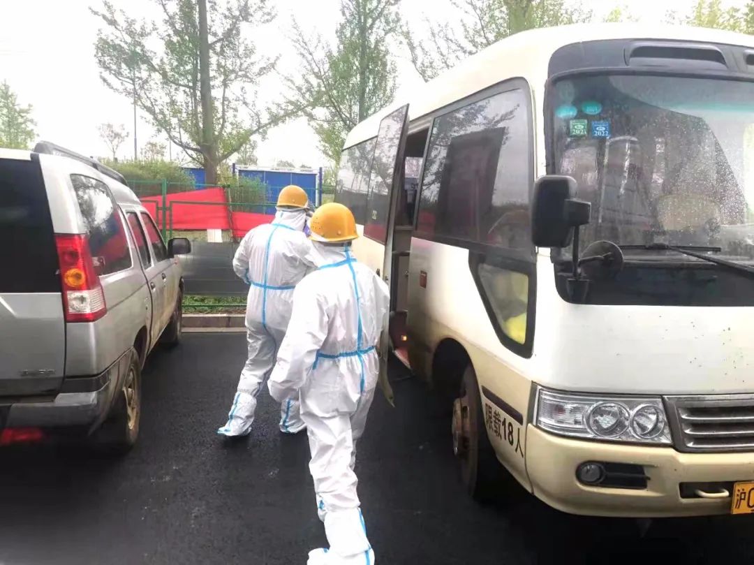 汽服公司的大巴準時發(fā)車,保障通勤,測溫、驗碼、登記必不可少。