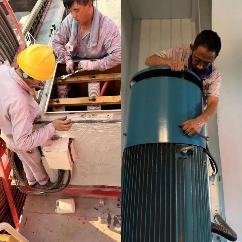 天氣炎熱,設(shè)備也常“中暑”。“2#門機出現(xiàn)分波過熱故障,門機跳電了”,早上7點,剛到港的修理電工大宋就接到前方司機的報修指令。大宋隨即和同伴趕到現(xiàn)場,經(jīng)過排查,發(fā)現(xiàn)是左旋電機風(fēng)機損壞。經(jīng)過2個多小時的搶修,設(shè)備再次順利投入使用。搶修人員剛下門機還沒來得及喝口涼水,對講機里又傳來了1#門機整機跳電故障報修。經(jīng)檢查判定這是一起因電纜滑環(huán)內(nèi)外溫差導(dǎo)致設(shè)備內(nèi)部有水凝造成的設(shè)備故障。此時戶外的溫度已達35℃,而門機機房經(jīng)過陽光的烘烤已近40℃,搶修人員卻毫不遲疑,立即投入搶修工作......