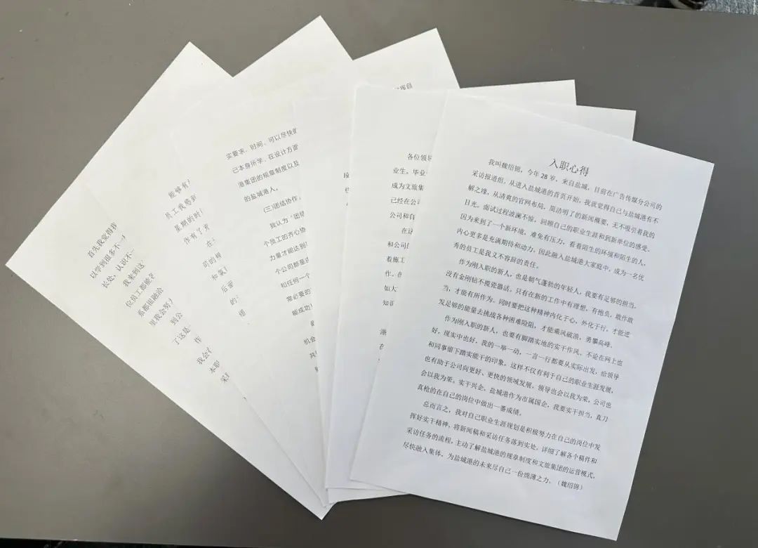 新員工們步入工作崗位后,提高了素質修養,磨礪了業務能力。面對新的環境、新的起點,他們也有了特別的感悟?!俺跞臌}城港,不懂的地方比較多,在第一次采訪時,面對突如其來的新聞稿寫作顯得‘手忙腳亂’,但同事們卻沒有絲毫不耐煩,而是熱情地傳授我撰寫、拍攝經驗。當所有工作圓滿完成后,這種奮斗過后的喜悅,是溢出來的幸福感。”“到文旅集團這個大家庭也已經有一個月時間了,我跟著前輩們深入碼頭一線,近距離感受鹽城港精神,我將繼續提高自己的專業水平,拍出更多更好的作品展現鹽城港的風貌?!倍潭痰囊粋€月里,新員工們惜時如金,踏踏實實學理論,認認真真練技能,業務能力不斷提高,責任意識持續增強,為日后工作校準了方向、蓄積了動能。