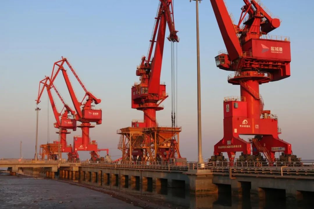 船來船去,上貨吊裝,作業有序,是碼頭泊位上的繁忙景象。2022年,射陽港區提前一個月超額完成生產經營目標任務。
