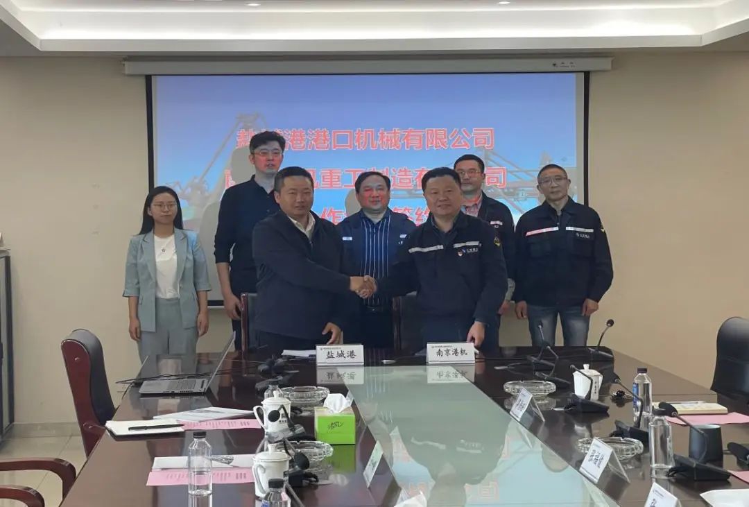 5月6日,南京港機(jī)重工制造有限公司、江蘇鹽城港港口機(jī)械有限公司框架合作協(xié)議簽約儀式成功舉行。南京港機(jī)重工制造有限公司黨委書記、董事長張群,鹽城港集團(tuán)副總信息師、科技集團(tuán)有限公司總經(jīng)理柏曉冬參加活動并鑒簽。