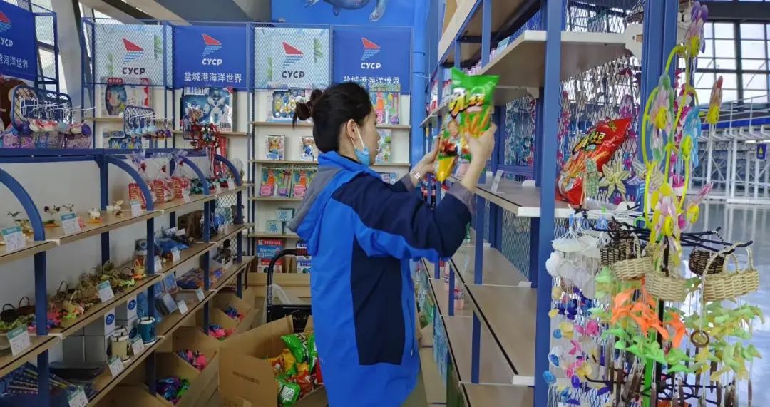景區(qū)各小組成員在部門負(fù)責(zé)人的帶領(lǐng)下積極備戰(zhàn)活動前的各項(xiàng)準(zhǔn)備工作。此次活動,結(jié)合大豐港動物園客流量資源優(yōu)勢,借助海洋劇場海豚錯峰表演時間,將游客進(jìn)行引流。同時,為滿足游客多樣化需求,促進(jìn)景區(qū)二次消費(fèi),海洋劇場商品柜臺準(zhǔn)備了數(shù)量充足、類別豐富的商品品類,工作人員正在提前往商品陳展架上擺滿各式各樣的商品。