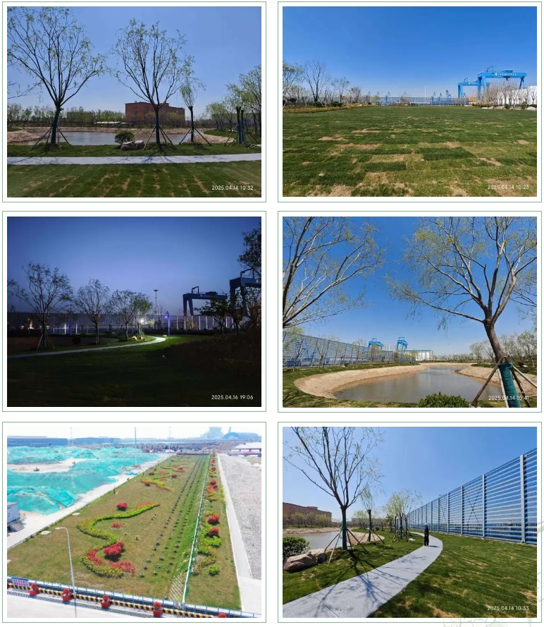 依托科學(xué)規(guī)劃,利用自有苗圃中的喬木、灌木及地被植物,建設(shè)錯(cuò)落有致的立體綠化景觀,改善港口工作生活環(huán)境。按流體力學(xué)原理設(shè)計(jì):40%透風(fēng)孔隙率、0.6風(fēng)速衰減系數(shù),形成梯度式生態(tài)屏障,防風(fēng)林帶與景觀花徑相交織,長(zhǎng)成后將有效實(shí)現(xiàn)"抑塵+降噪+碳匯"三重效能,為港口披上“生態(tài)外衣”,實(shí)現(xiàn)生產(chǎn)與自然的和諧共生。