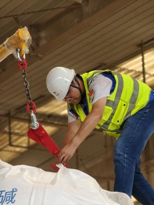 純堿是一種極其重要的工業(yè)原料,廣泛應用于玻璃、輕紡、制鹽和冶金等項目,被譽為“化工之母”。為保障純堿業(yè)務首航順利,響水港區(qū)精心籌備,組織生產、倉儲多部門聯(lián)動,細化作業(yè)環(huán)節(jié),克服酷暑考驗,倉儲組長王玨更是24小時駐守生產一線,工裝被汗水反復浸透,但依然堅守。