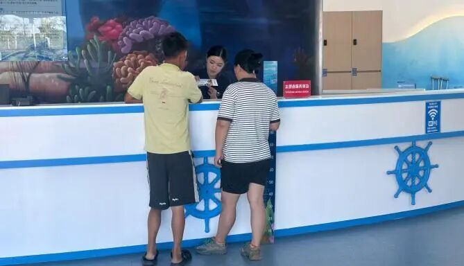 “作為大豐港海洋世界的員工,我們不僅是海洋知識傳播者,更是景區形象的守護者。”游客中心老員工張梅玲向新員工們強調服務初心。她帶領新員工從接聽電話、商品銷售、門票銷售、年卡核銷到游客接待等方面耐心講解每個細節?!坝慰偷陌踩腕w驗永遠是第一位,我們多一份細心,游客就多一份安心”。老員工不僅傳授技能,更注重傳承“專業、責任、創新”工作理念。在老員工的帶動下,新員工積極主動“實操賦能”,真正從“學習者”變成“參與者”。