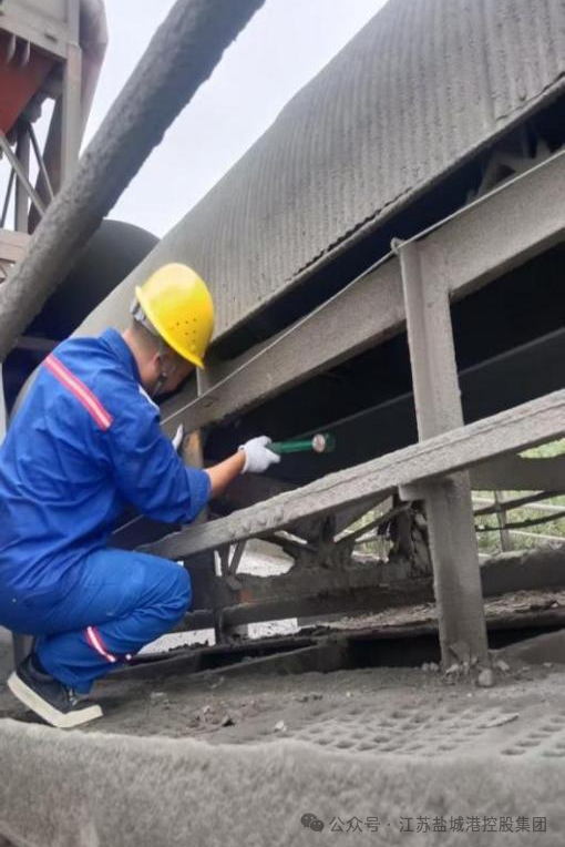 散貨碼頭的皮帶線,堪稱港區物流動脈。一次作業中,轉運關鍵節點的皮帶機滾筒突發卡死,導致整條熟料運輸線面臨停擺。“動脈”阻塞,分秒都是損失。“洋陽”班組火速響應,化身“急診醫生”。拆解、清理、更換軸承——他們在粉塵彌漫和噪聲環繞的環境中展開緊急維修。汗水浸透工裝,油污沾滿雙手,但沒有一個人退縮。通過緊密的輪班協作,原本需要一天的維修任務,僅用四小時就圓滿完成,讓這條“鋼鐵巨龍”再次奔騰起來。