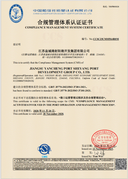 下一步,射陽港區將以此次認證為契機,不斷深化合規管理體系的運行和改進,將其融入經營管理的各個環節,為鹽城港航事業高質量發展筑牢合規保障。