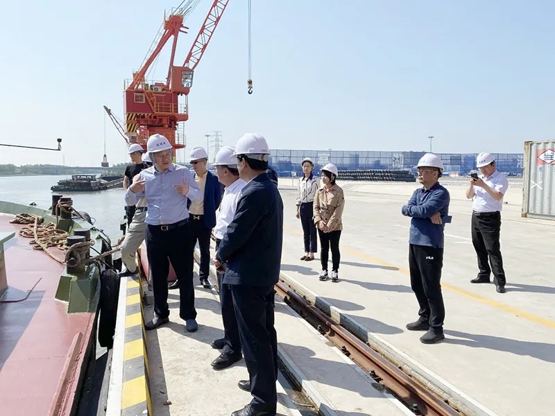 考察組一行深入鹽城港亭湖港區了解碼頭建設、生產經營、安全環保等相關情況,并召開座談會。