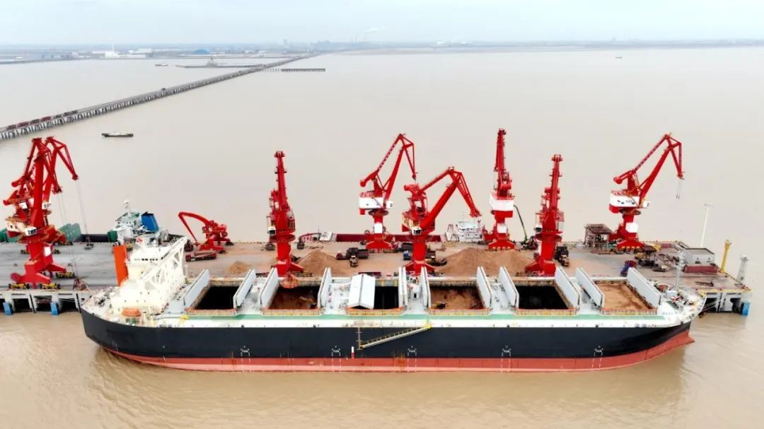 開始作業前,通用碼頭分公司上下躊躇滿志,堅決打響新年“第一響”,統籌安排船舶調度,優化作業流程和裝卸計劃,對作業模式、碼頭設備保障和人力儲備進行詳細安排。作業過程中,三臺門座式起重機用整齊劃一的卸貨動作詮釋著“專業”“精良”“高效”,同時作業人員主動對接生產指揮中心、物流公司等多個部門和單位,全面壓縮非生產停時,最大限度提質增效,在全員共同努力下,通用碼頭分公司以穩定高效的作業能力圓滿完成本次作業任務。據統計,本次單船作業用時78小時,單船效率達633.4噸/小時,同比上漲15%,單班最高產量達8774.46噸,同比上漲12%,晝夜最高產量達16198.68噸,同比上漲6%,勇破四項生產紀錄,完美完成首戰“開門紅”。
