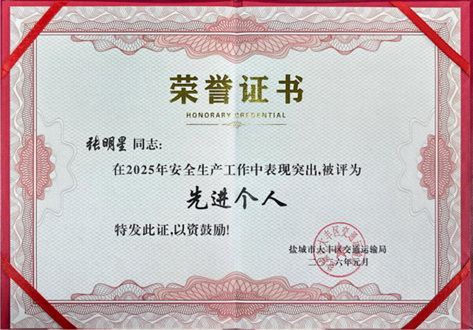 近日,鹽城港港口危化品運(yùn)輸有限公司憑借扎實(shí)有效的安全生產(chǎn)管理工作、突出的安全風(fēng)險防控成效,榮獲大豐區(qū)交通局授予的“2025年安全生產(chǎn)工作先進(jìn)集體”榮譽(yù)稱號,用責(zé)任與擔(dān)當(dāng)樹立了危化品行業(yè)安全規(guī)范經(jīng)營的標(biāo)桿。