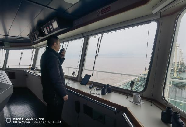 引航團隊為保障航行安全,提前半小時從碼頭出發登輪,熟悉掌握該船舶的操縱性。